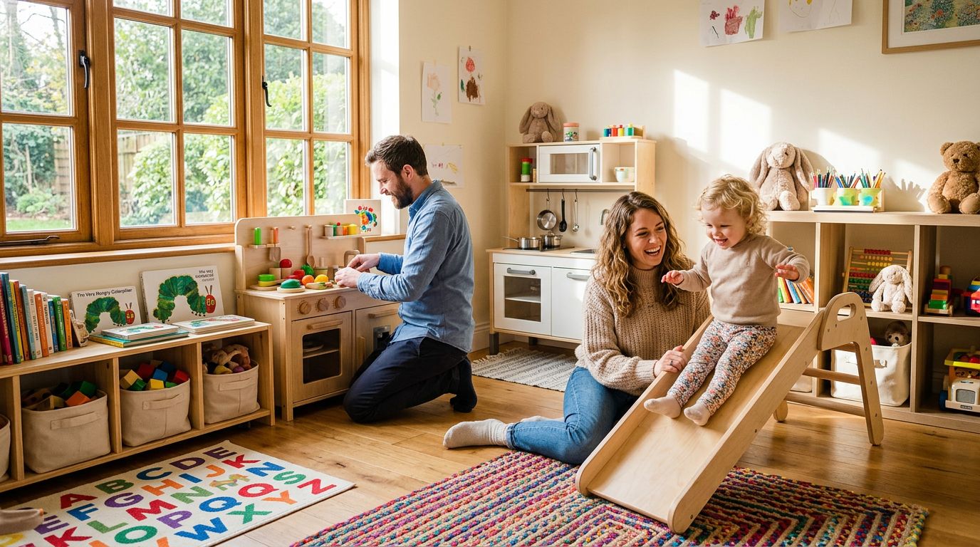 The 8-in-1 playset packs a slide, climber, tunnel, basketball hoop, telescope, and ring-toss into a 31.5 ร 42.5 ร 53.5 inch footprint. HDPE construction holds up to 110 pounds and carries toddlers 1โ3 through daily indoor and outdoor use. Every ring, ball, and telescope tucks inside the base between sessions. ASTM certified, 4.7 stars on 177 reviews โ #11 in the Freestanding Slides category.